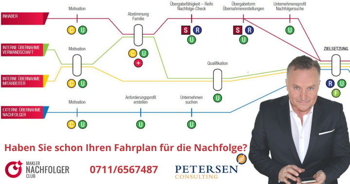 Die Planung der Nachfolge kann man mit einem S-Bahn-Streckennetz vergleichen. Um an der richtigen Haltestelle anzukommen, müssen Sie verschiedene Haltestellen passieren und in die richtige Bahn ein- bzw. umsteigen. Nur so kommen Sie dort an, wo Sie auch wirklich hinmöchten.